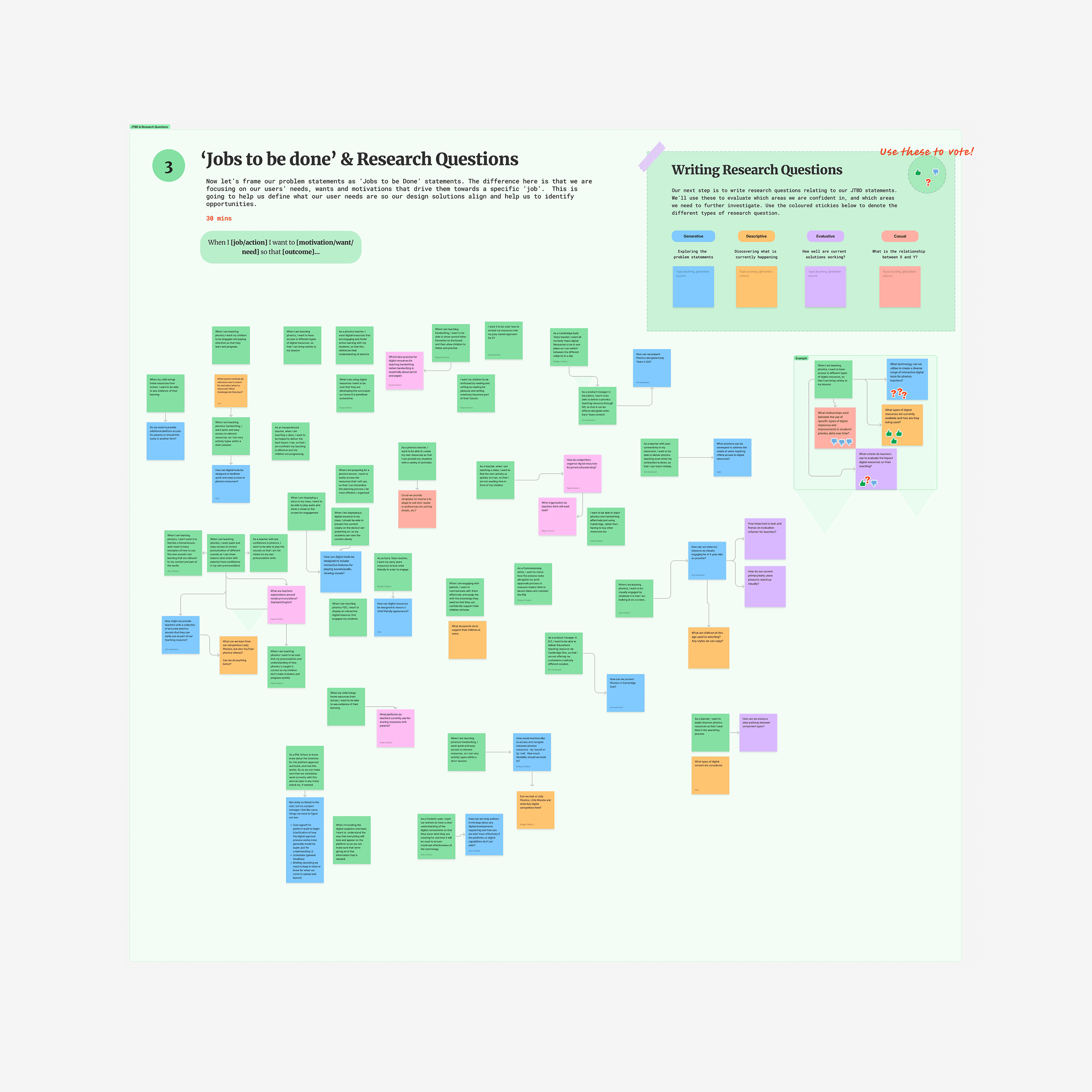 I worked collaborated with SMEs to dig into the needs of Early Years teachers. I facilitated workshops to turn existing research insights into clear jobs-to-be-done statements and sorted them by what we knew vs what we still needed to validate.